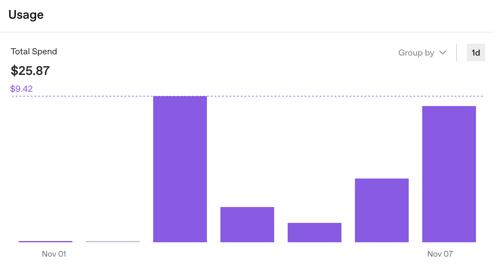While those logs aren’t ideal for debugging, they did remind us about something else we should be tracking: usage statistics. OpenAI’s dashboard provides detailed breakdowns of API consumption per key. It answers one question quickly: Are we burning through our budget?