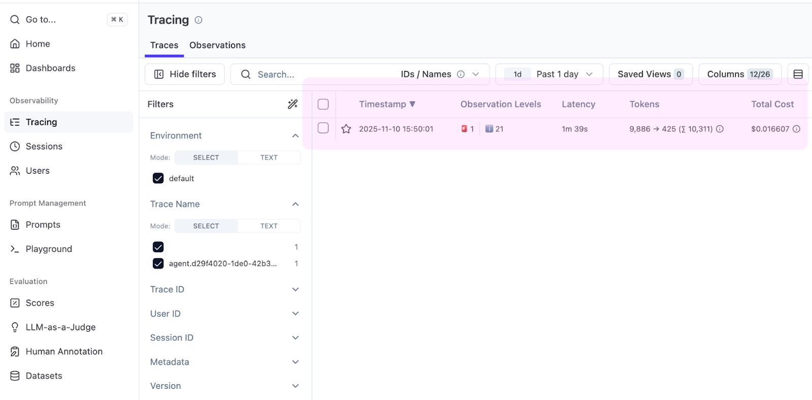 After evaluating several options, our team chose Langfuse. The decision came down to practical factors: It’s open source with a self-hosted option (so traces stay under your control), it offers a free cloud tier for getting started, the UI makes it easier to inspect traces, and the team is responsive when questions come up.
