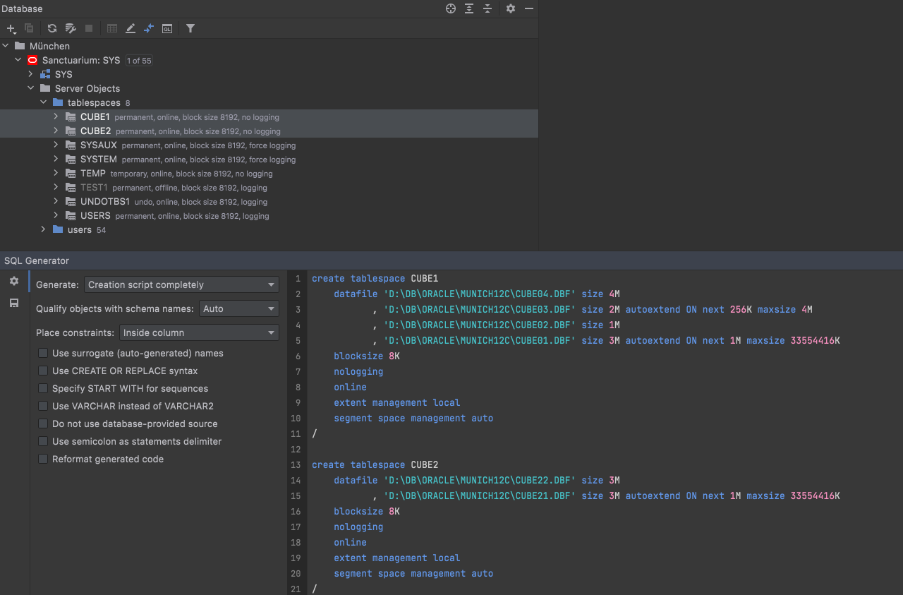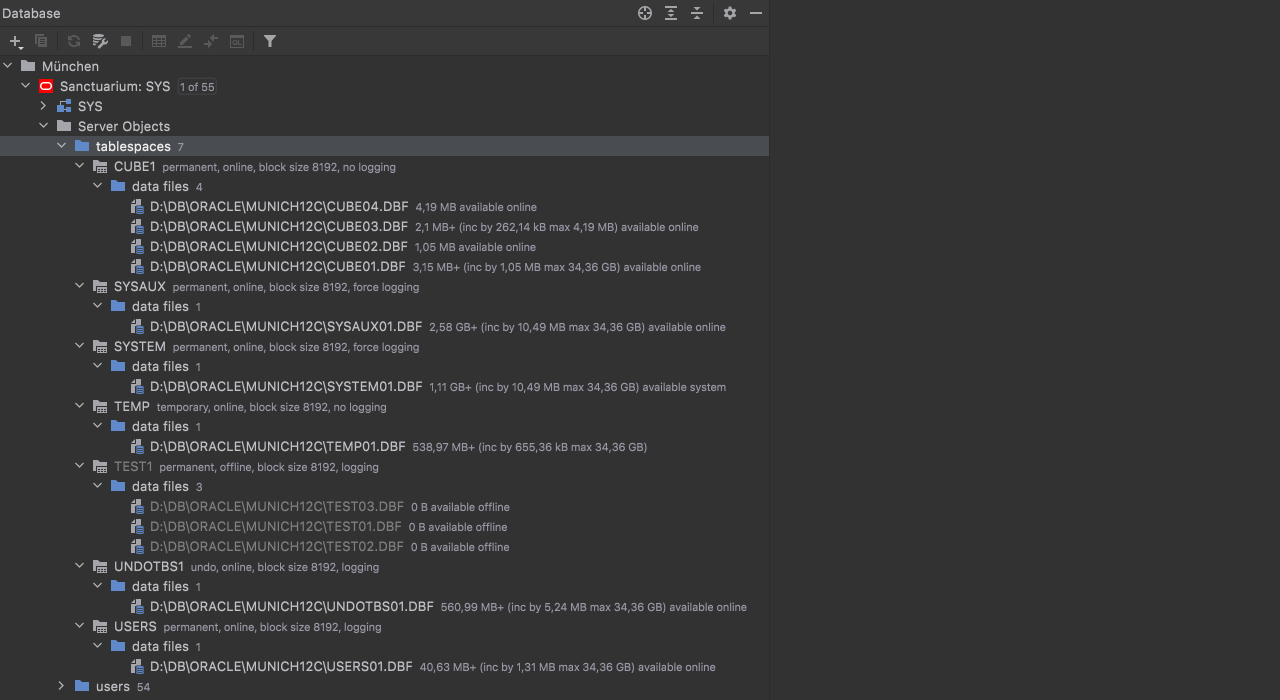 We added support for tablespaces, data files, and temporary files. They are now introspected: