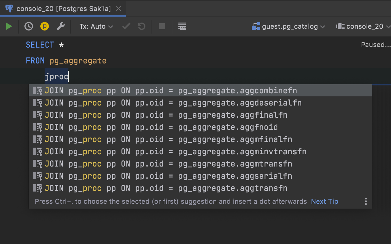DBE-13164: No more freezing when typing JOIN statements along with using virtual foreign keys.