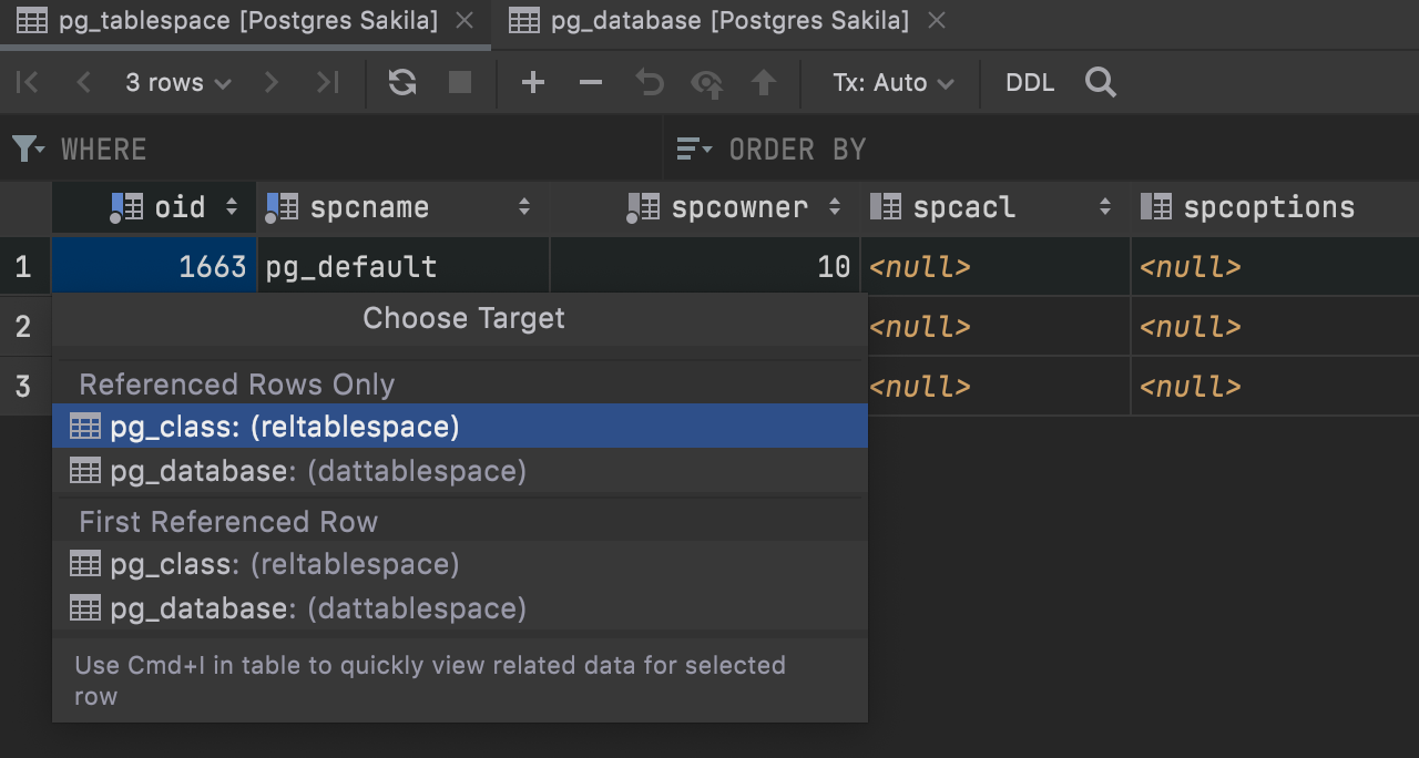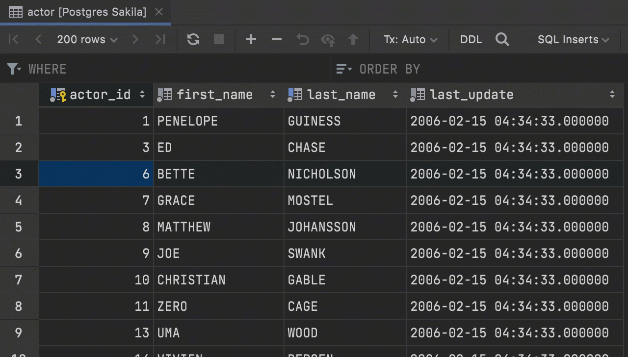 Introduced in the previous release, context live templates now work from the data editor. If you’re working with a table and you wish to query it, you can easily do so with the help of the SQL scripts action!