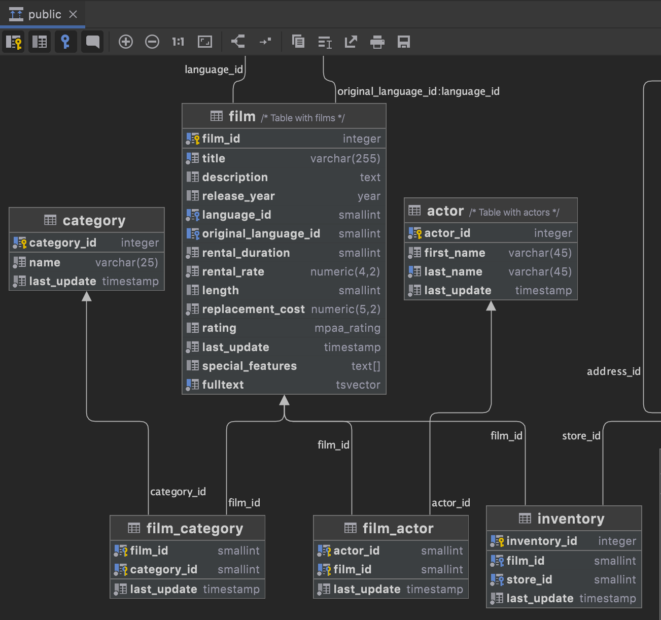 This is much faster than JDBC-based introspection. Also, role, deftype, and check constraint weren’t introspected at all in the previous version. The full list of objects that are now introspected includes database, role, privilege, schema, sequence, deftype, table, view, mat view, index, column, and constraints. It’s a known issue that partitions are not introspected yet.