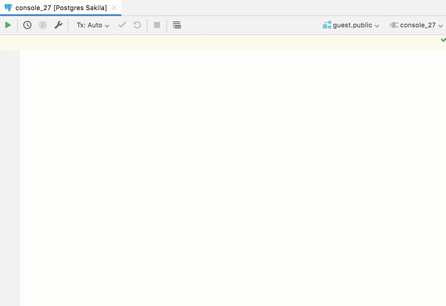 DataGrip saves all the queries you run. To view the query history for the current data source, click the Clock button on the console’s toolbar.