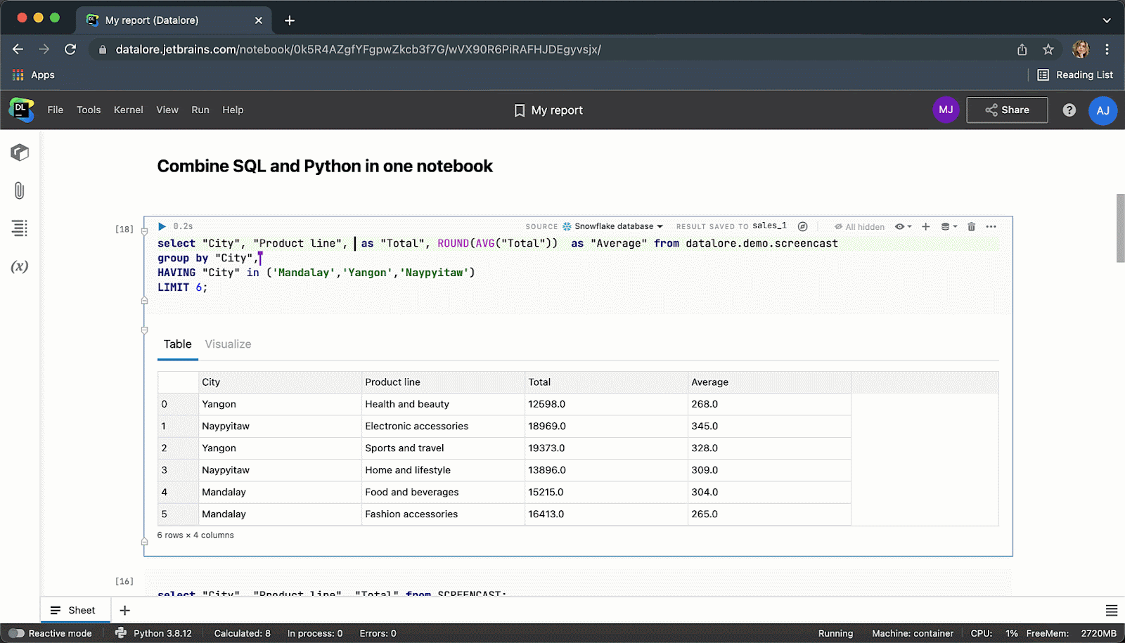 At JetBrains, we have combined the power of DataGrip’s SQL engine with the interactive features of Datalore and introduced native SQL support inside Python notebooks.