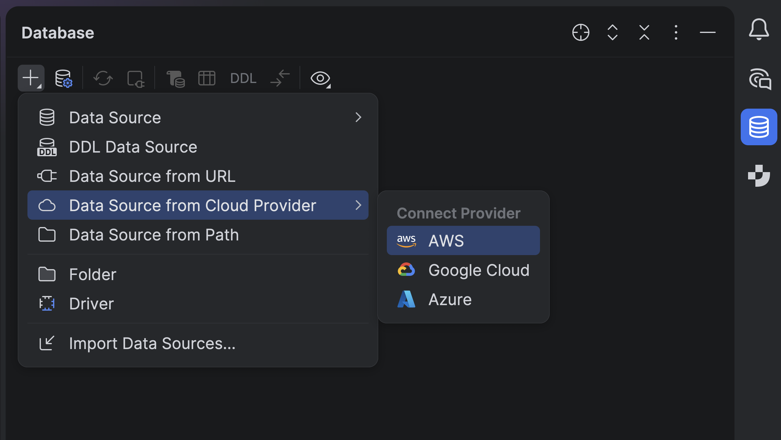PhpStorm ist jetzt mit Cloud-Datenbankanbietern kompatibel! In der neuen Version können Sie Ihre AWS-, Azure- und Google Cloud-Konten mit der IDE verbinden, die Liste der Datenbanken, die Sie in diesen Konten verwenden, durchsuchen und jene auswählen, mit denen Sie eine Verbindung herstellen möchten. PhpStorm erstellt neue Datenquellen und füllt alle Verbindungsdetails aus.