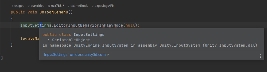 In addition to documentation for MSDN and the Unity Core API, Rider is now also able to give quick access to online documentation for Unity registry packages, including DOTS. You can view links to the documentation by either pressing F1 or consulting the Quick Documentation popup that appears when you hover over a symbol.