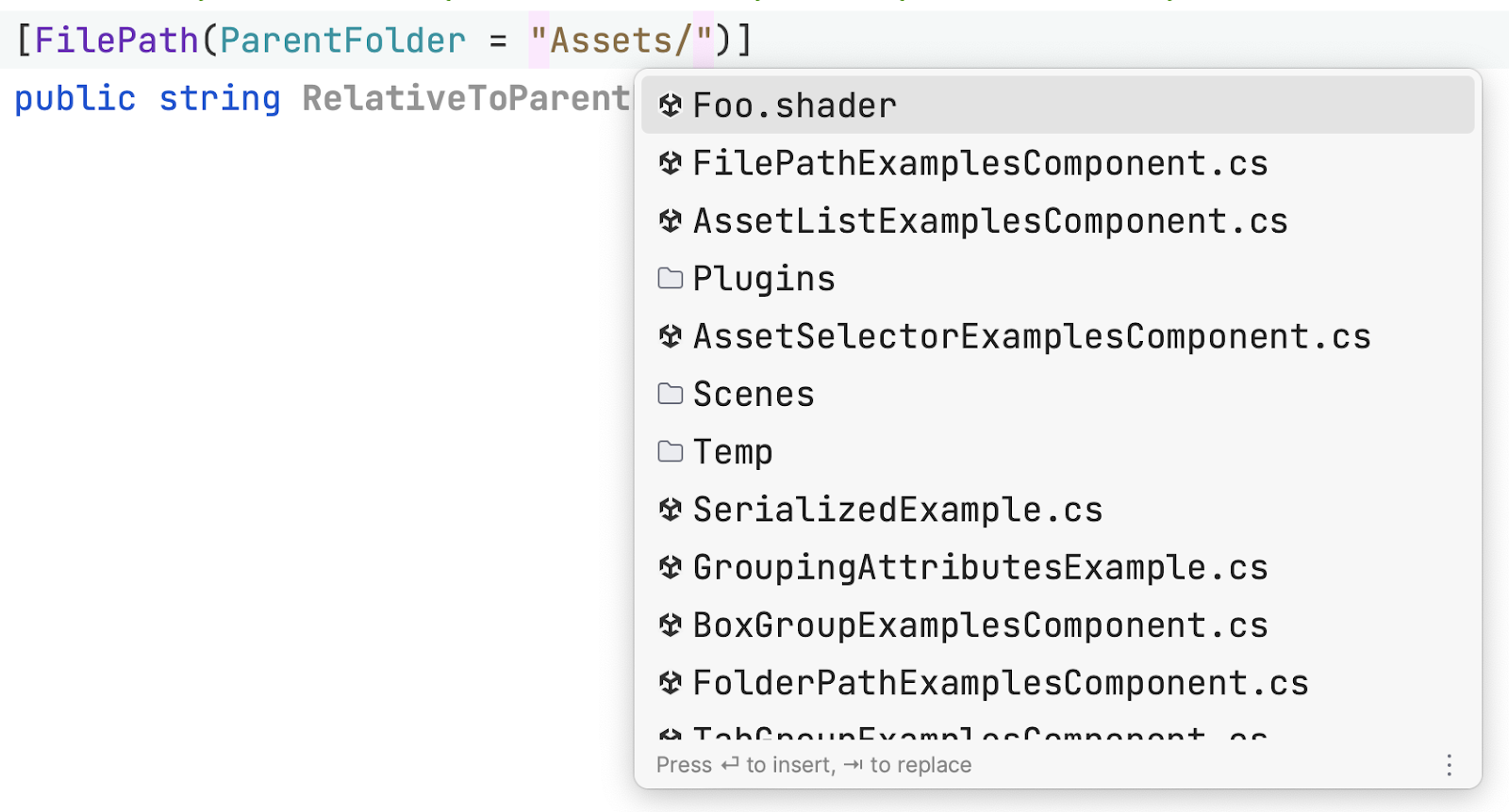 Odin has lots of helpful attributes for game development. After inspecting Odin attributes, we have added the following valuable features to Rider: