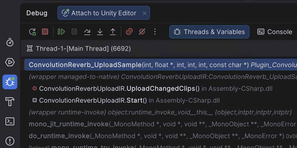 You can debug games running on iOS devices directly from Rider on macOS – set breakpoints, inspect variables, and step through code using the familiar debugger interface. This builds on previous Android support and completes the mobile workflow across platforms.