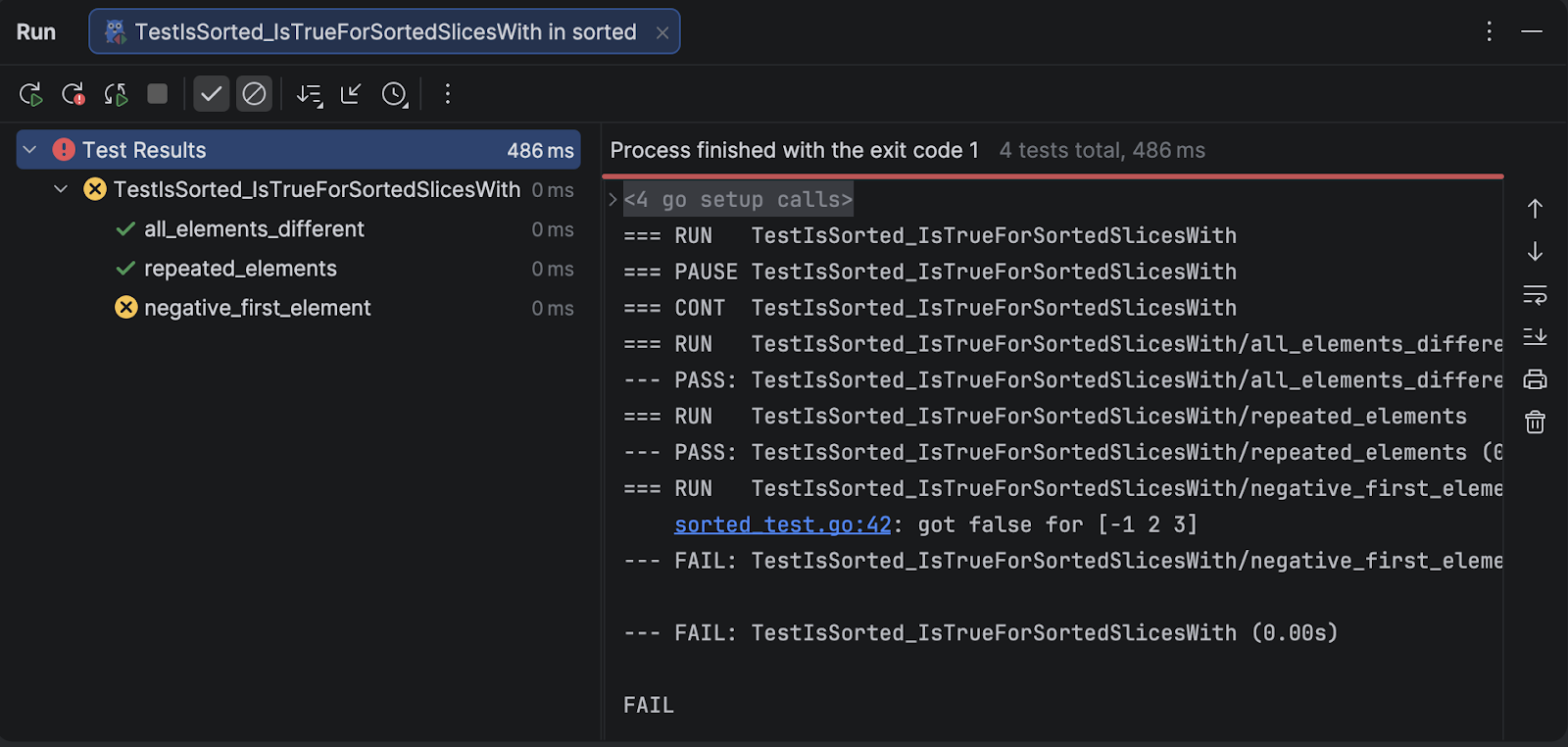 === FAIL: TestIsSorted_IsFalseForUnsortedSlice