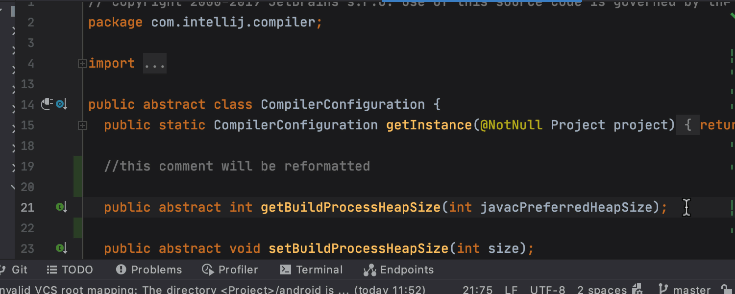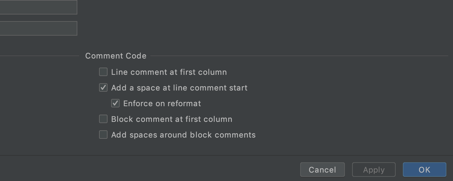 We’ve improved line comments to ensure consistent formatting in the code. The Add a space at line comment start option has been augmented with an Enforce on reformat checkbox that is enabled automatically.