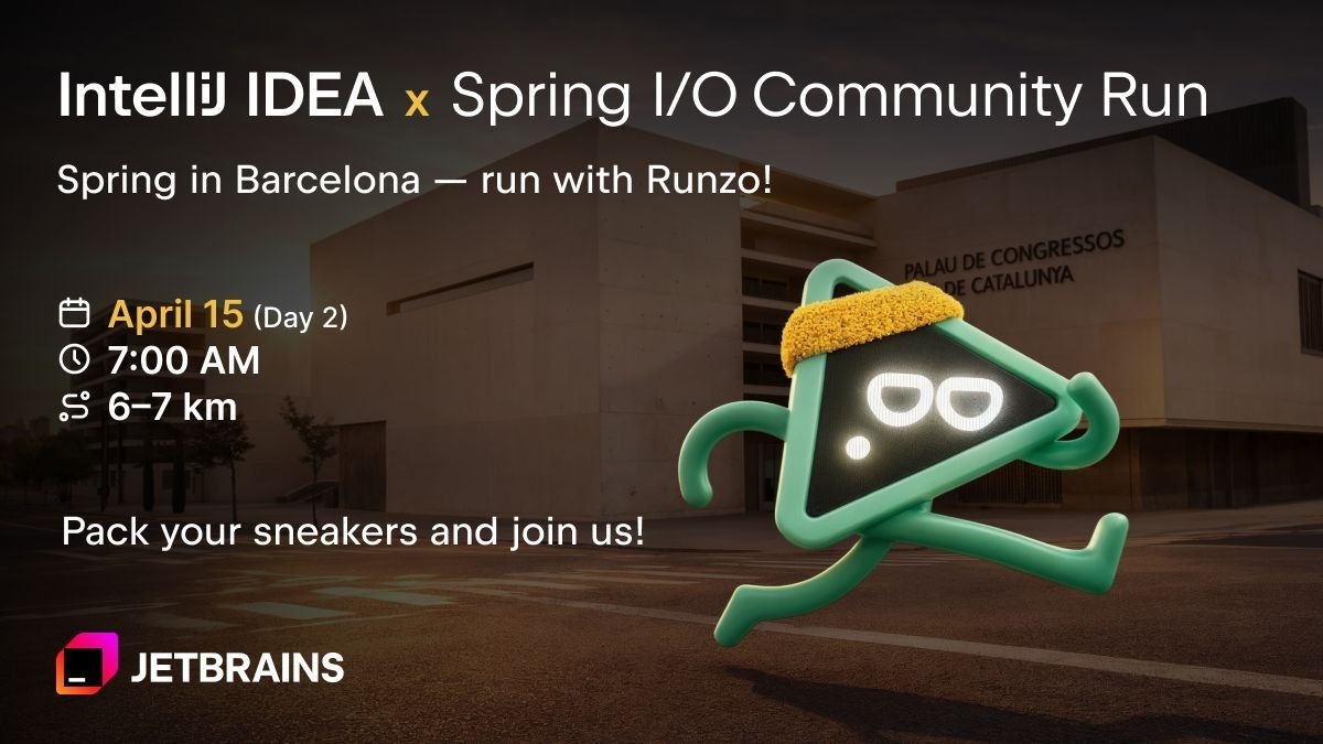 - Spring I/O – Barcelona, Spain, April 13–15; Come say hi at the JetBrains booth and join the community run!