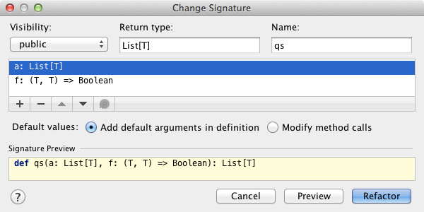 ScalaプラグインはChange Signatureリファクタリングの追加、SBTサポートの強化、パフォーマンスの改善など様々な強化が施されています。より詳しく »