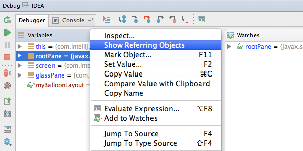 新しいデバッガアクションであるShow Referring Objectsを使うと選択しているオブジェクトを参照しているオブジェクトの一覧を確認することができます。より詳しく »
