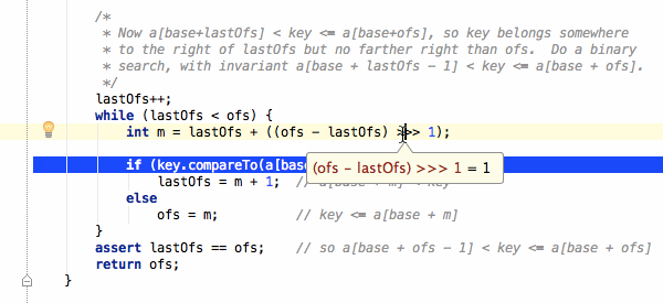 IntelliJ IDEA 14はオペレータ式を評価することが出来ます。オペレータ式にマウスオーバーするだけでその値を確認できます。より詳しく »