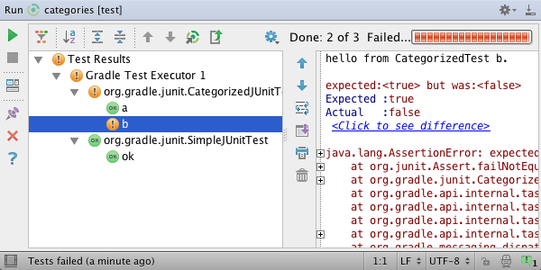 Gradleタスク経由でテストを走らせた場合、コンソール出力ではなく標準のIDEテストランナ—で実行します。さらにRun ConfigurationよりGradleタスクを起動させることも出来るようになりました。またGradleベースのGrailsプロジェクトサポートも強化されました。