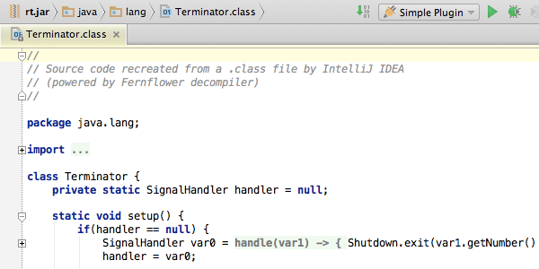 IntelliJ IDEA 14はJavaクラスのデコンパイラを内蔵しています。ソースコードをお持ちでないライブラリの中身を覗きたい場合、サードパーティプラグインなしに確認することができます。 より詳しく »
