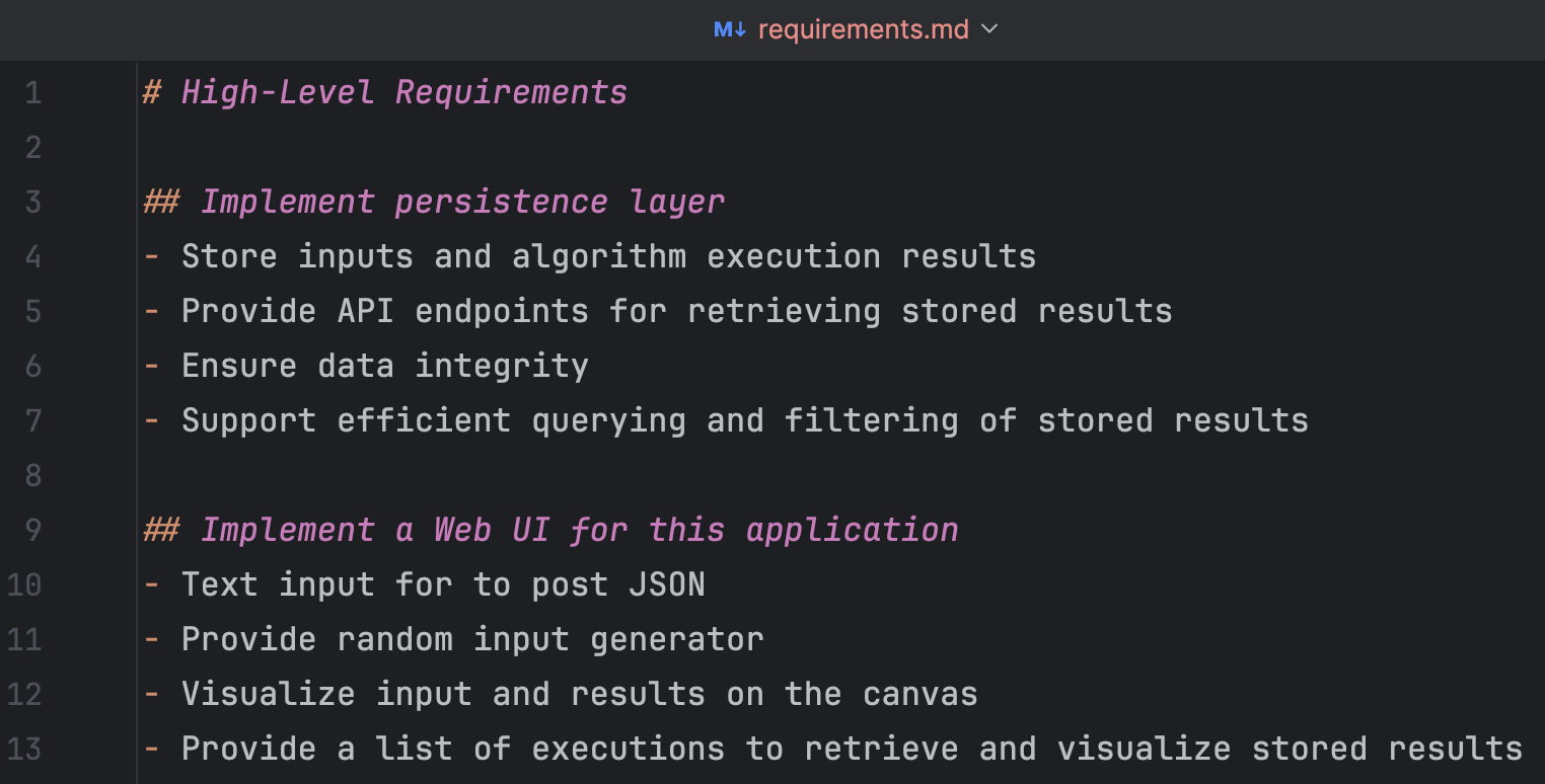 That’s where high-level requirements come in. They describe what should happen, not how to do it. Think of them as your North Star: a short list of desired outcomes that provides context for the agent without boxing it in. Writing them down in a file, say requirements.md, is a small step that pays off later. It gives both you and the agent a shared starting point that doesn’t vanish after one conversation.