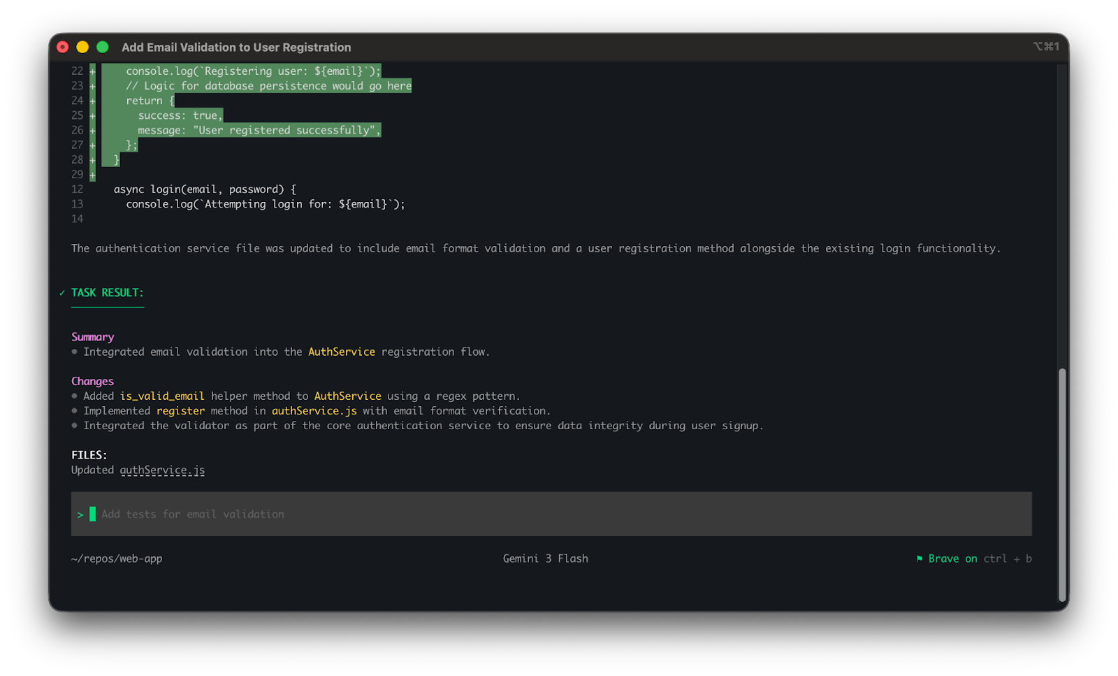 Work doesn’t stop while Junie runs. You can adjust instructions and add details in real time — refining outputs without restarting the process.