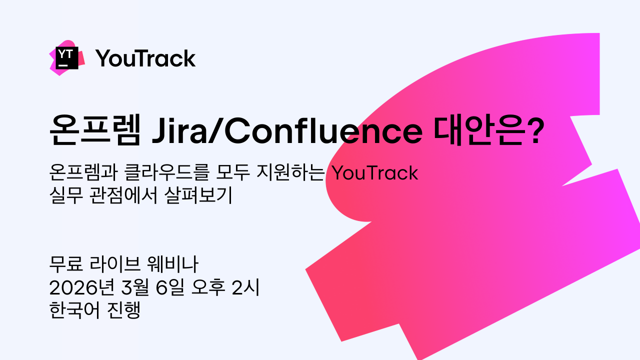 온프렘 Jira/Confluence 대안을 찾고 계신가요? YouTrack 웨비나에 초대합니다!
