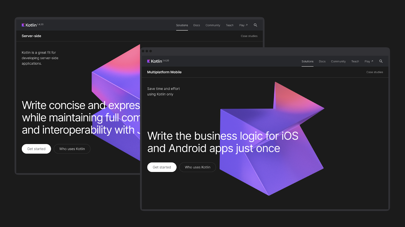 As a font, we’ve picked JetBrains Sans. As one of JetBrains’ products, we wanted to emphasize our relationship and our commitment to the same values. As a fun detail, there is an alternative “i” in the font, specifically for the word Kotlin.