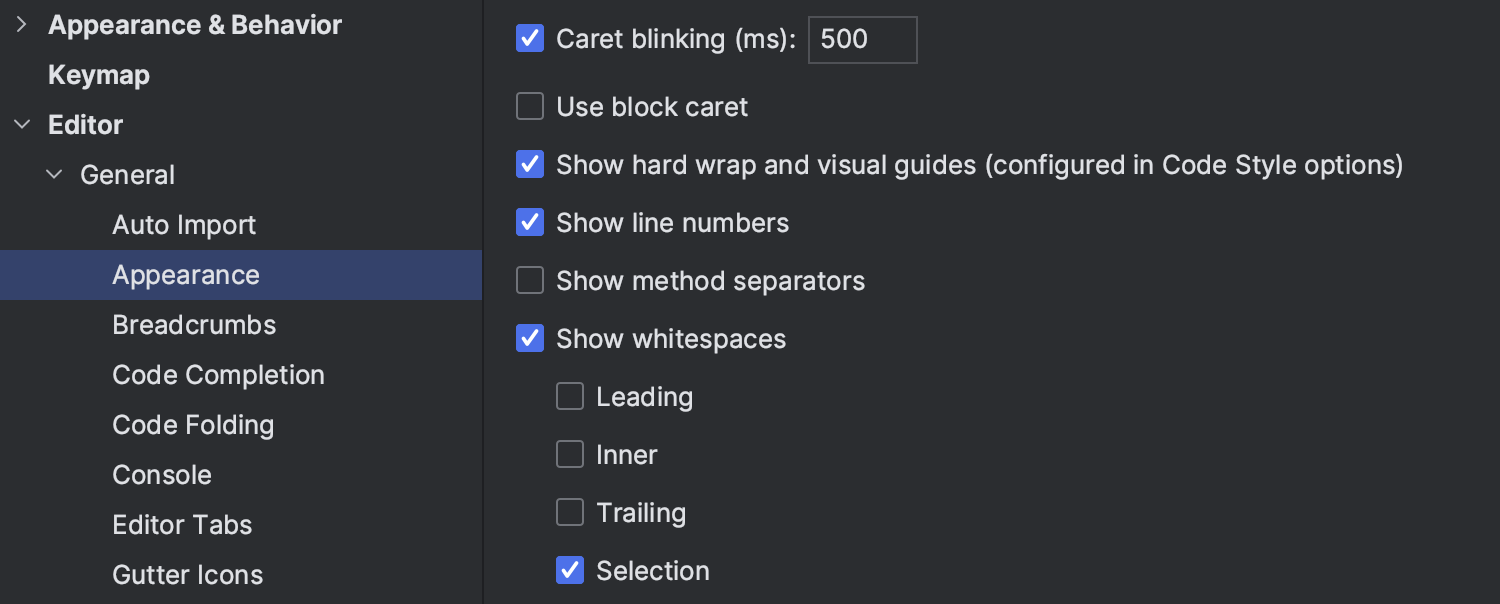 Option to show whitespaces only in selected code