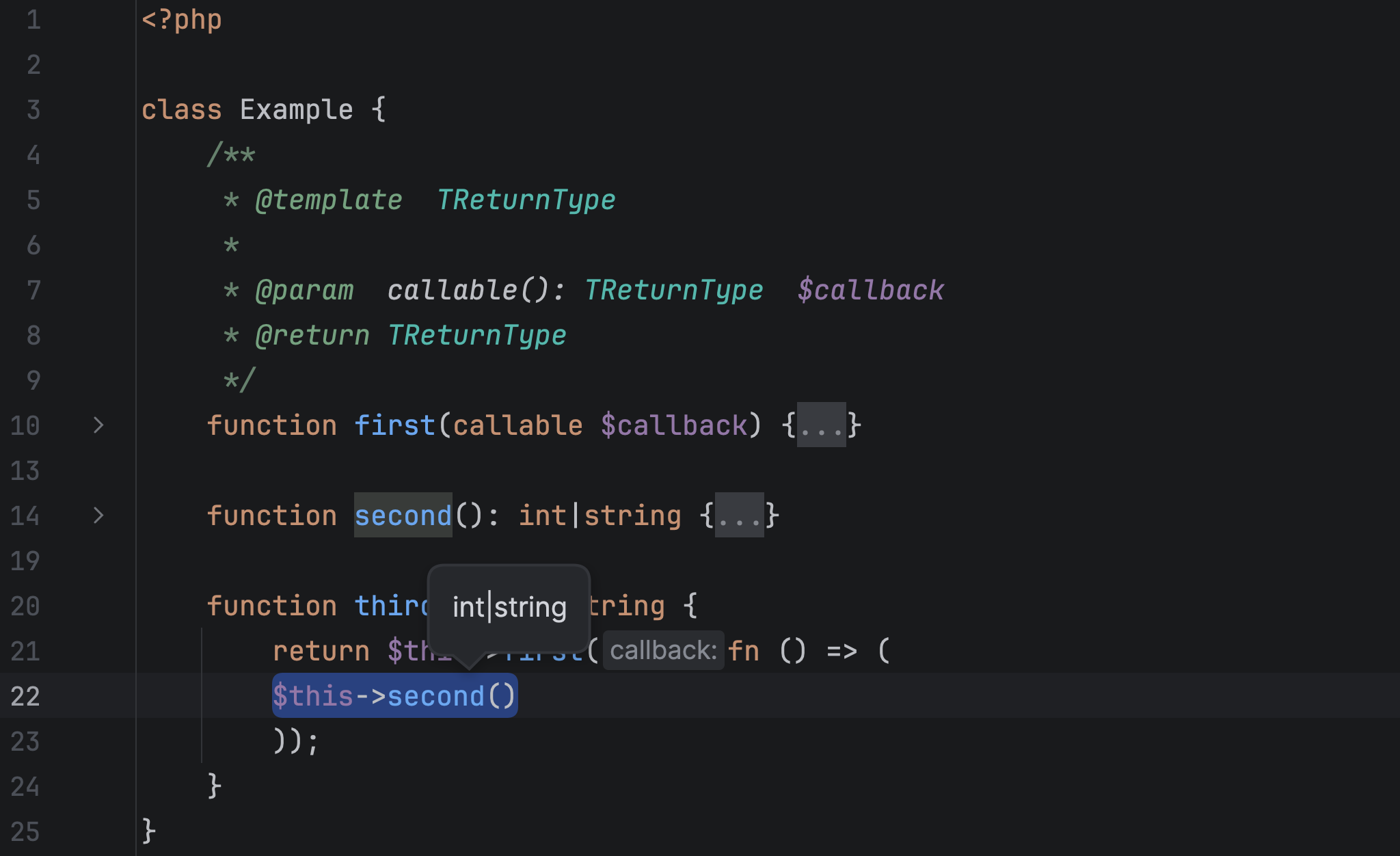 - Improved type inference for callable generic types. Now the IDE can infer both the input parameter type from a