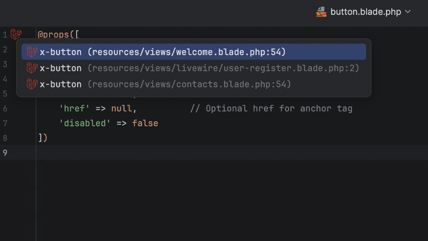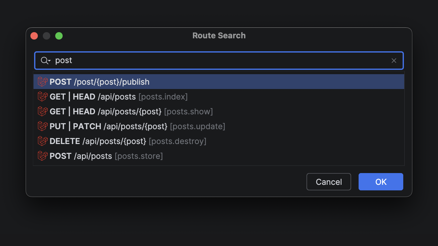 - UI and navigation: Blade view usages UI, better controller inlays, new Route Search UI, and routes to the Endpoints tool window.