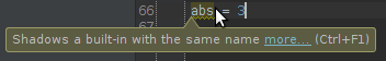 - Shadowing built-ins is a new inspection that highlights definitions of names that match the names of Python built-in functions: