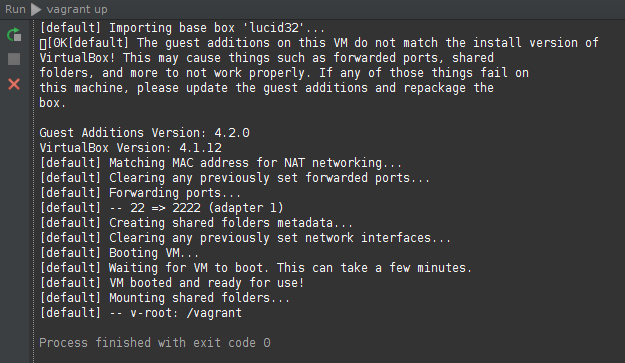 Now you can start your first VM! To do so, select Tools | Vagrant | Up.