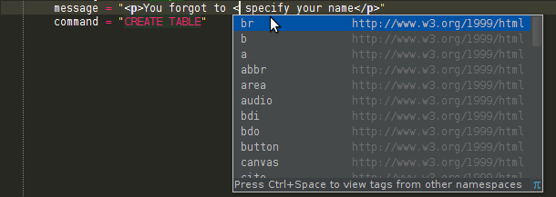 The Language injection tool that allows editing the arbitrary language code that is embedded into string literals natively with the completion and other stuff: