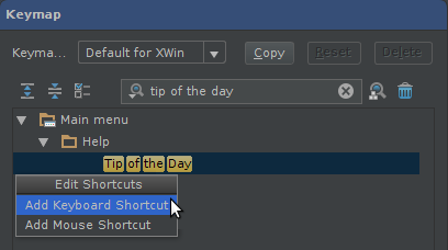 P.S. Uhh… “Help | Tip of the day” with menu is not so much productive way. You need to use your mouse to reach it. Inspired by this blog post I’ve added shortcut for that: