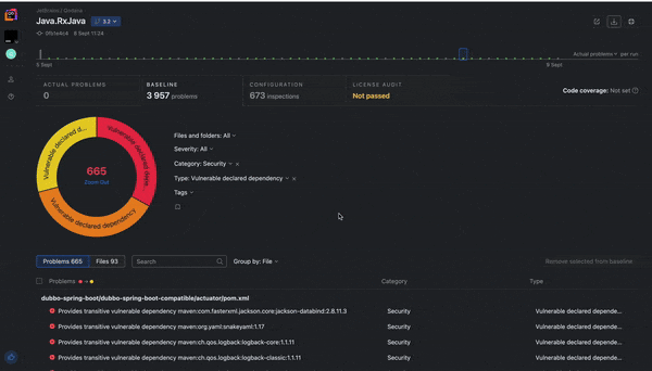 Qodana provides detailed reports that improve auditability, helping businesses prove compliance and monitor whether unauthorized AI usage is affecting their business operations.