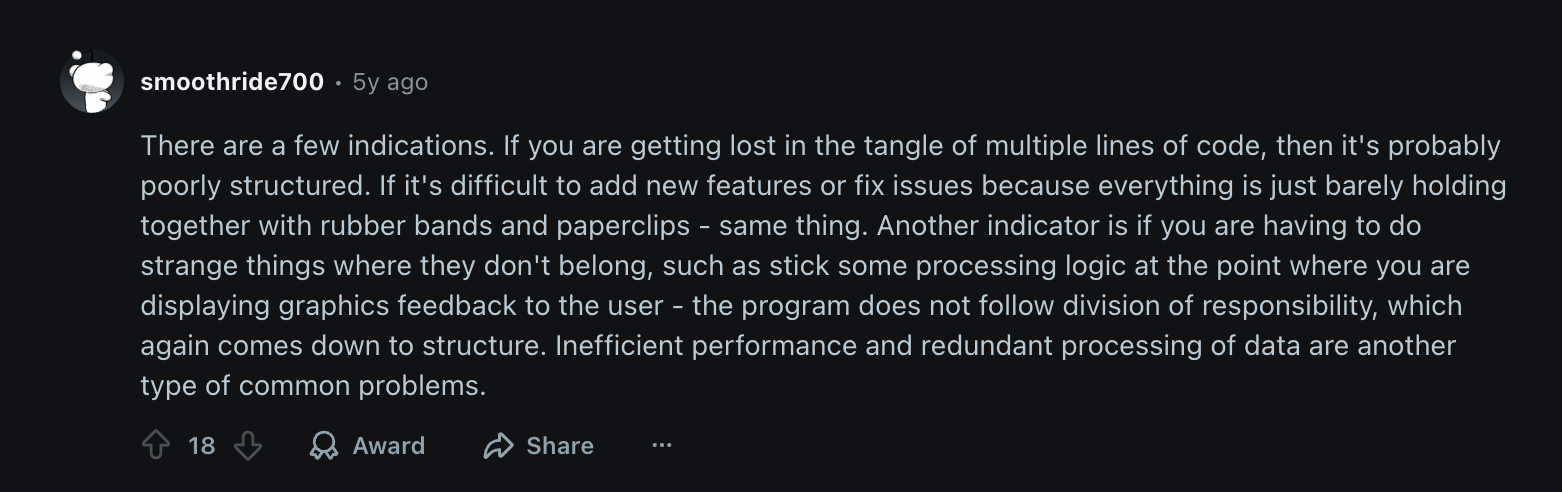 The phrase “bad code” gets thrown around in reviews and online forums all the time. But what does it actually mean? It’s a good example of the vague terms that occasionally make the rounds in developer circles without much to qualify them.