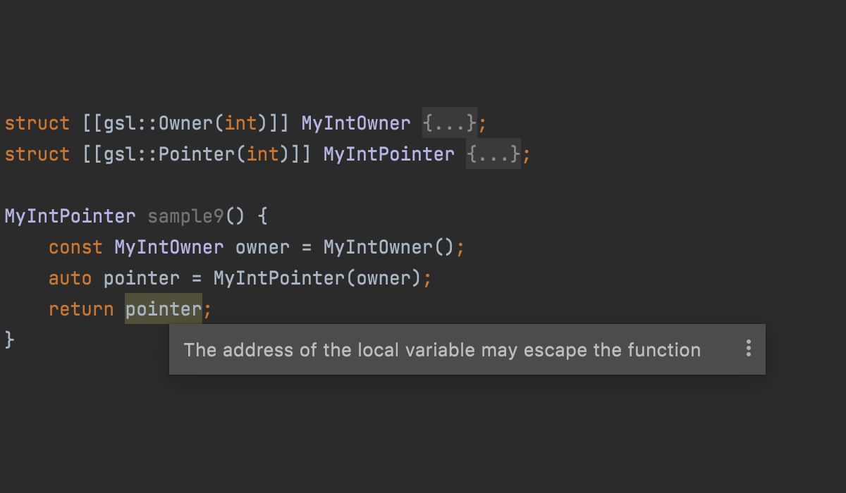 Также вы можете разметить свой код аннотациями GSL (подробное описание — в предложении Герба Саттера), и CLion будет использовать их при анализе: