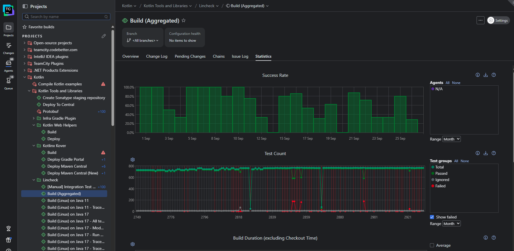 In TeamCity, the Statistics dashboard provides deeper insights into the performance of each build: