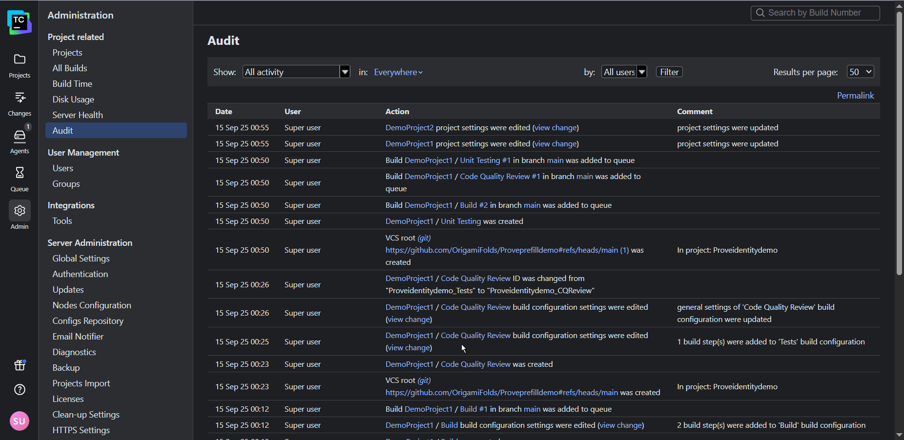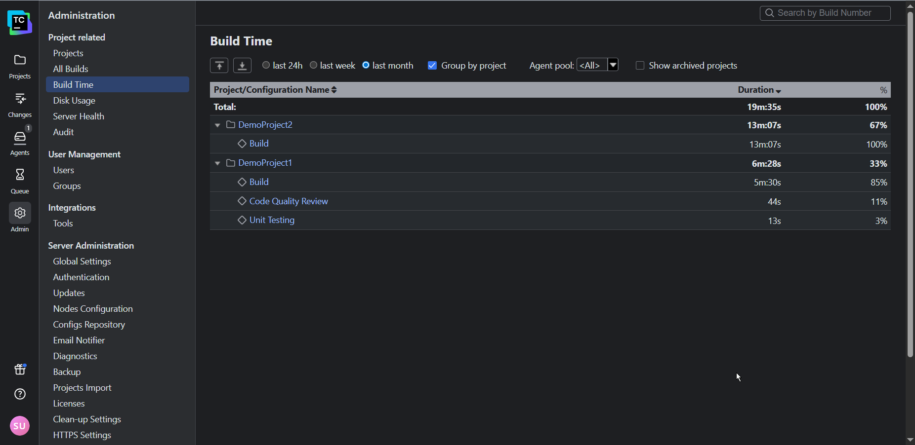 Finally, TeamCity’s audit log and historical performance reports offer the transparency and accountability needed for a performance-oriented culture by letting you track changes and share successes with stakeholders.