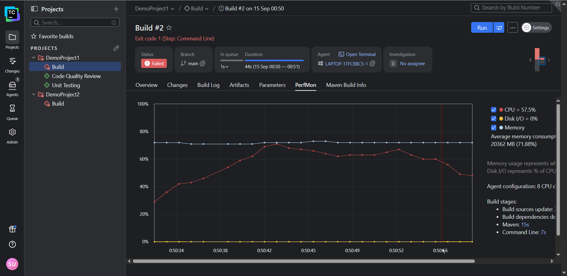 By default, TeamCity attaches its Performance Monitor to each of your build configurations created from a URL. This provides you with a handy way of tracking resource utilization: