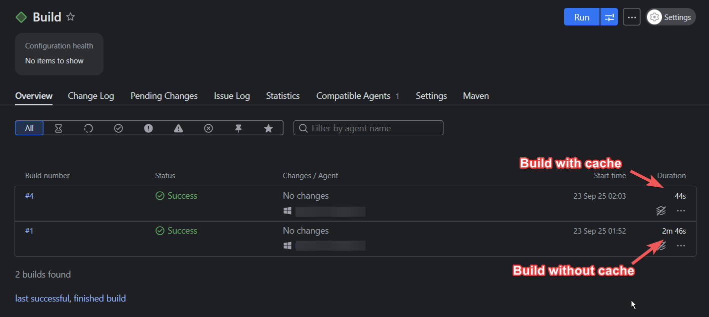 TeamCity’s built-in features can help your team achieve several quick wins.For example, the build caches can be enabled to intelligently reuse compiled artifacts and dependencies: