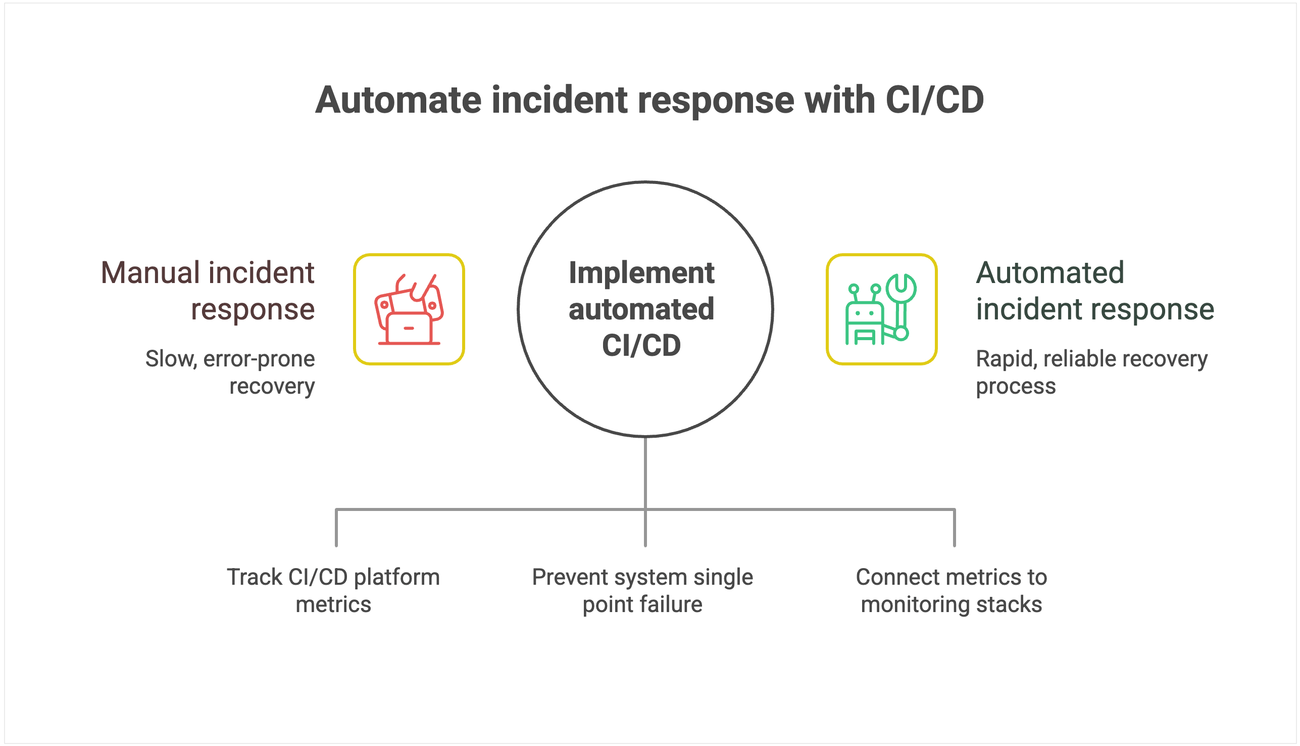 The lack of automated recovery mechanisms forces organizations to rely entirely on human intervention during high-stress situations. Poor integration with monitoring and alerting systems compounds these problems by delaying incident detection. Teams often learn about failures from customers rather than proactive monitoring.