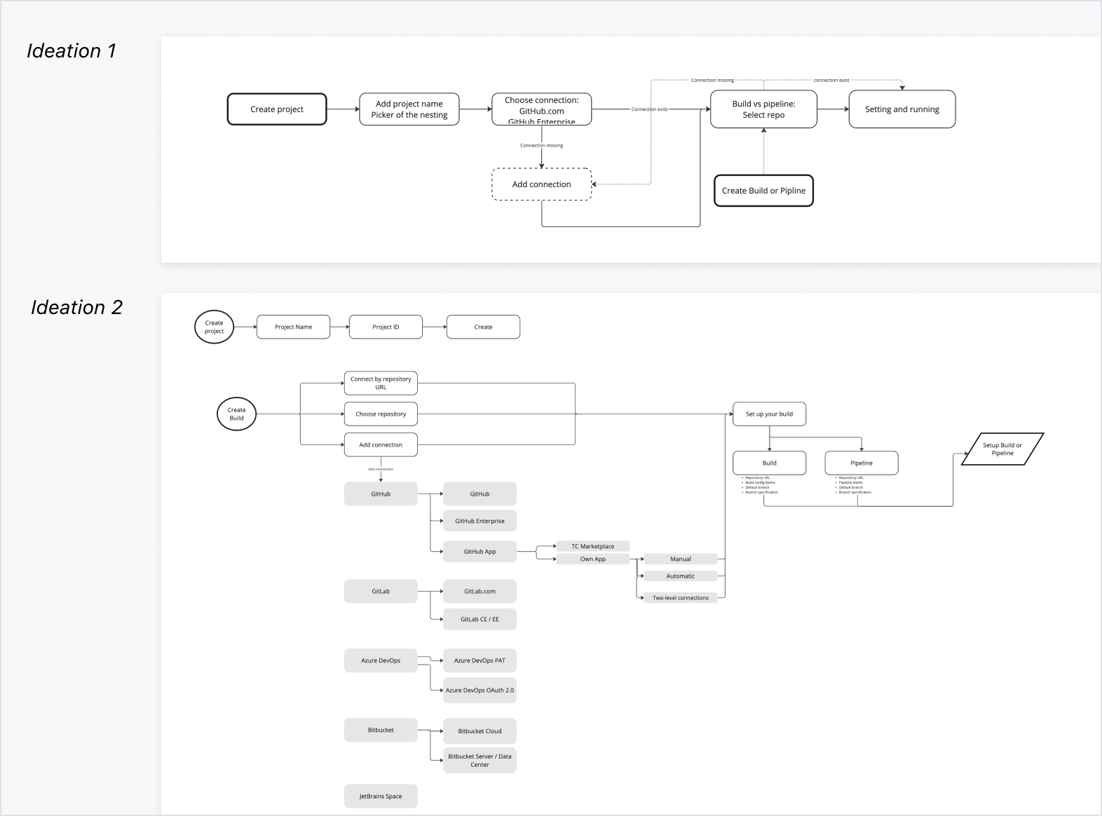 As outlined in Part One, our product interviews uncovered a recurring pain point: new users often get stuck when creating projects in TeamCity. The flow wasn’t intuitive, and creating or reusing connections was more complex than it should have been.