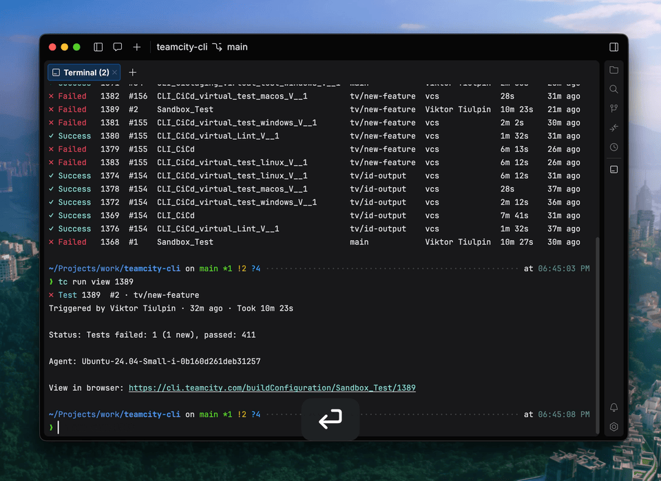 TeamCity CLI is a lightweight, open-source tool that puts TeamCity at your fingertips.