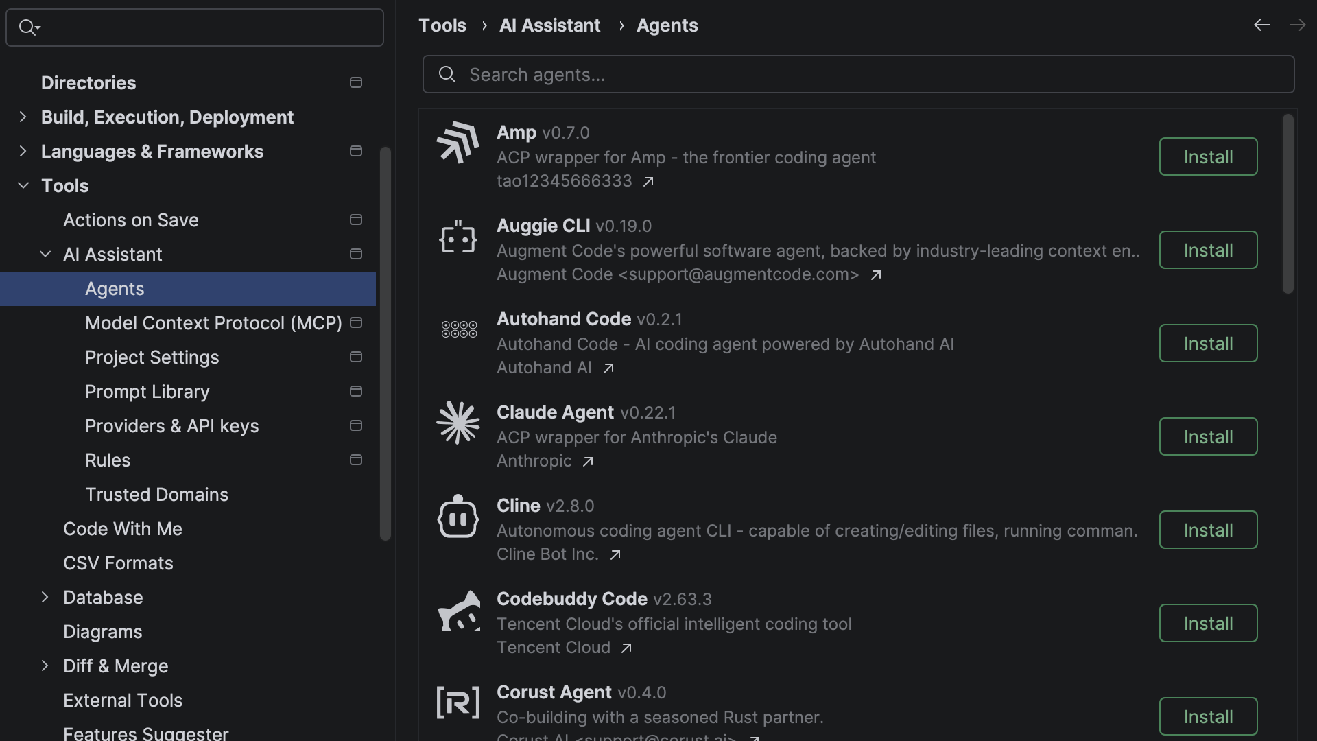 Different AI tools are good at different tasks, but switching between them can break your flow. In addition to Junie, Claude Agent, and most recently Codex, you can now choose from more agents in the AI chat, including Cursor, GitHub Copilot, and dozens of external agents supported via the Agent Client Protocol.