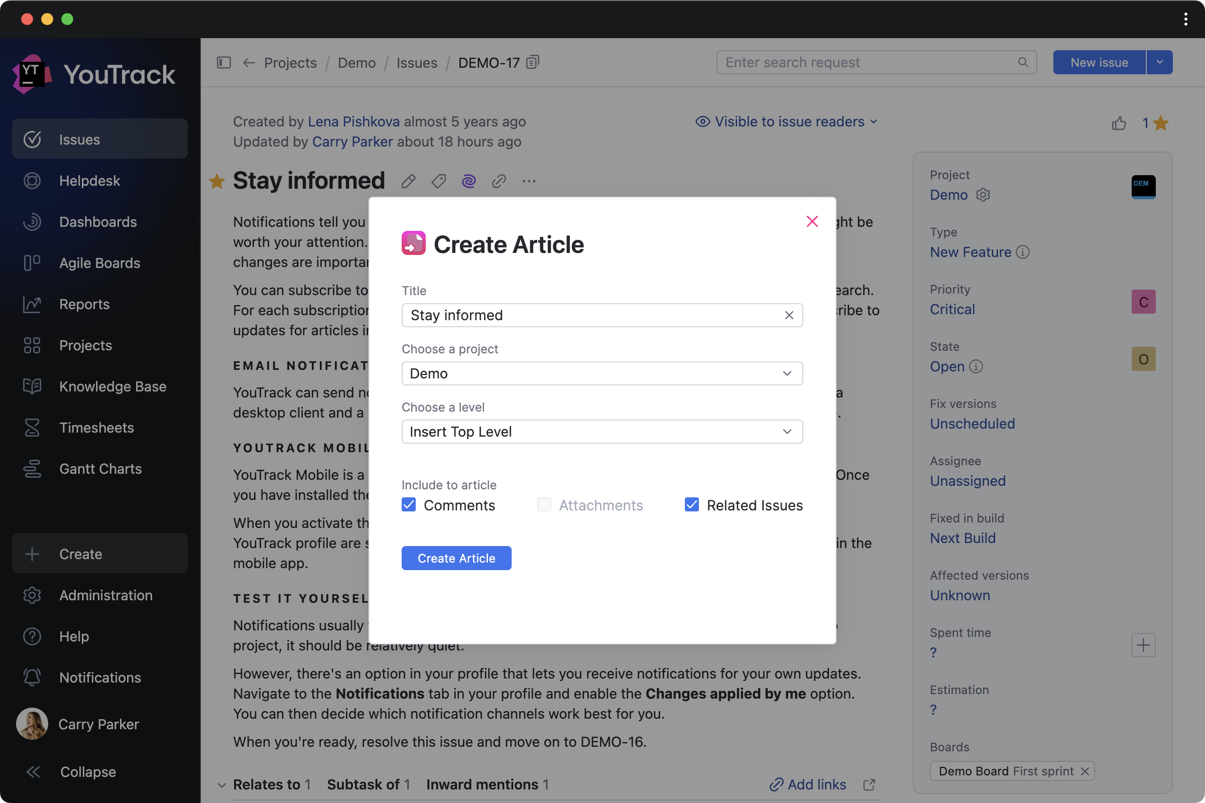 We hear your feedback regarding YouTrack’s new design and continue to work on improving it. The Notification Center view can now be expanded into a dedicated page, making it easier to scan messages and stay organized without distractions.