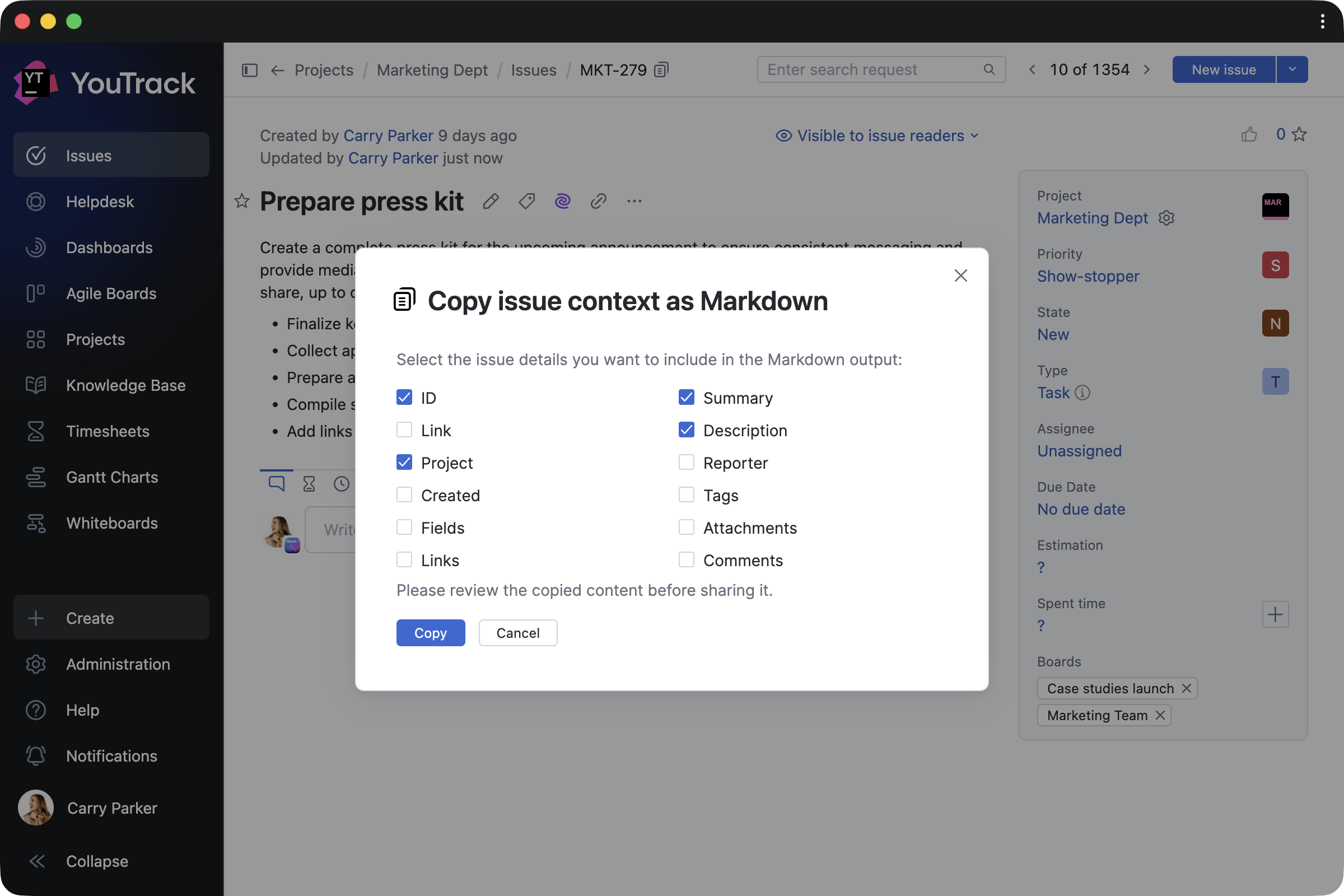 Copy link and context as Markdown by Maksim Fedorov makes working with content easier by copying selected tasks or article contexts, and their links, as Markdown.