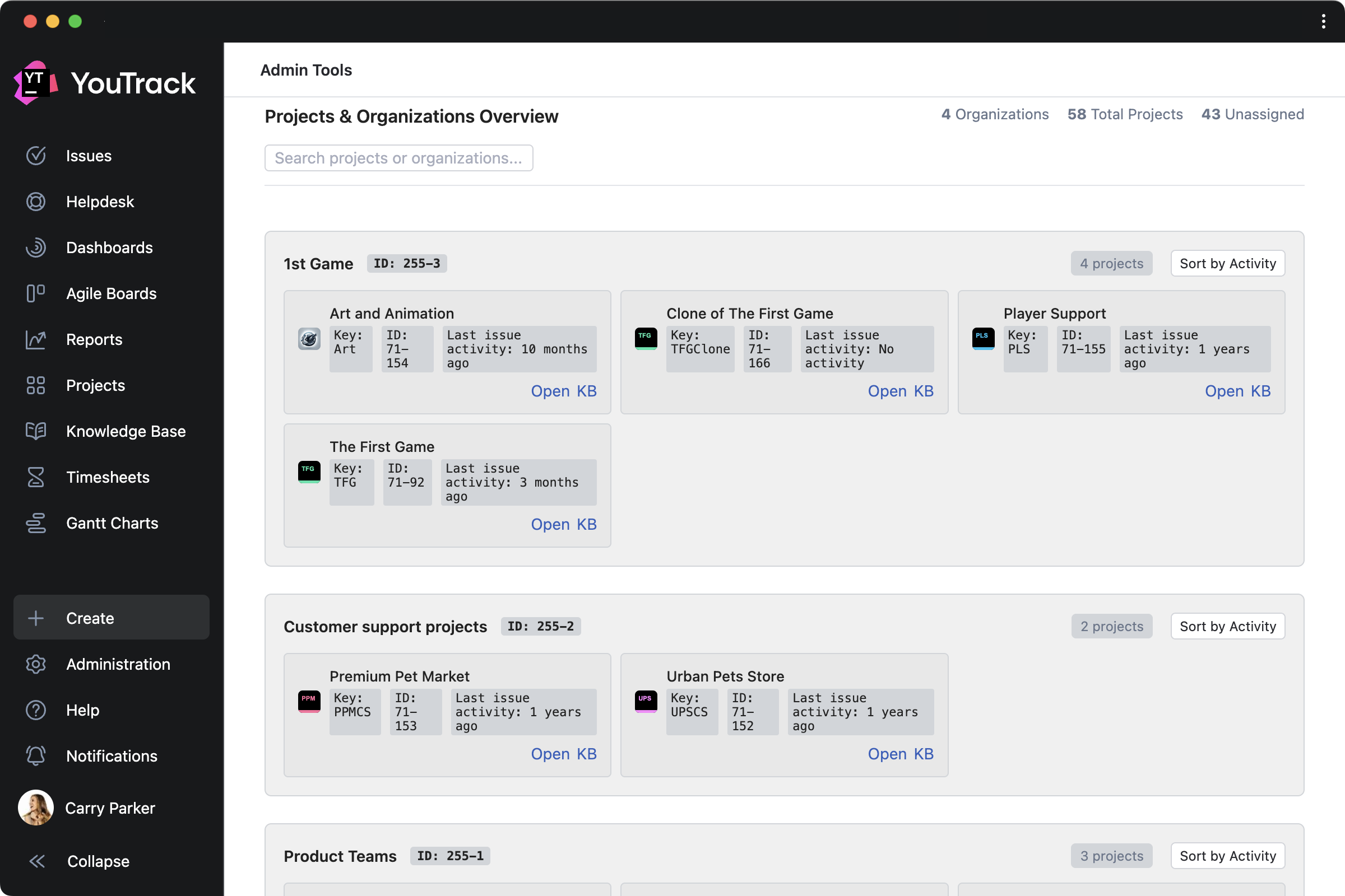 Admin Tools by msp AG is created for administrators and adds a separate page that lets you add custom fields to multiple projects at once, get a clear overview of all projects, and view license information for your YouTrack.