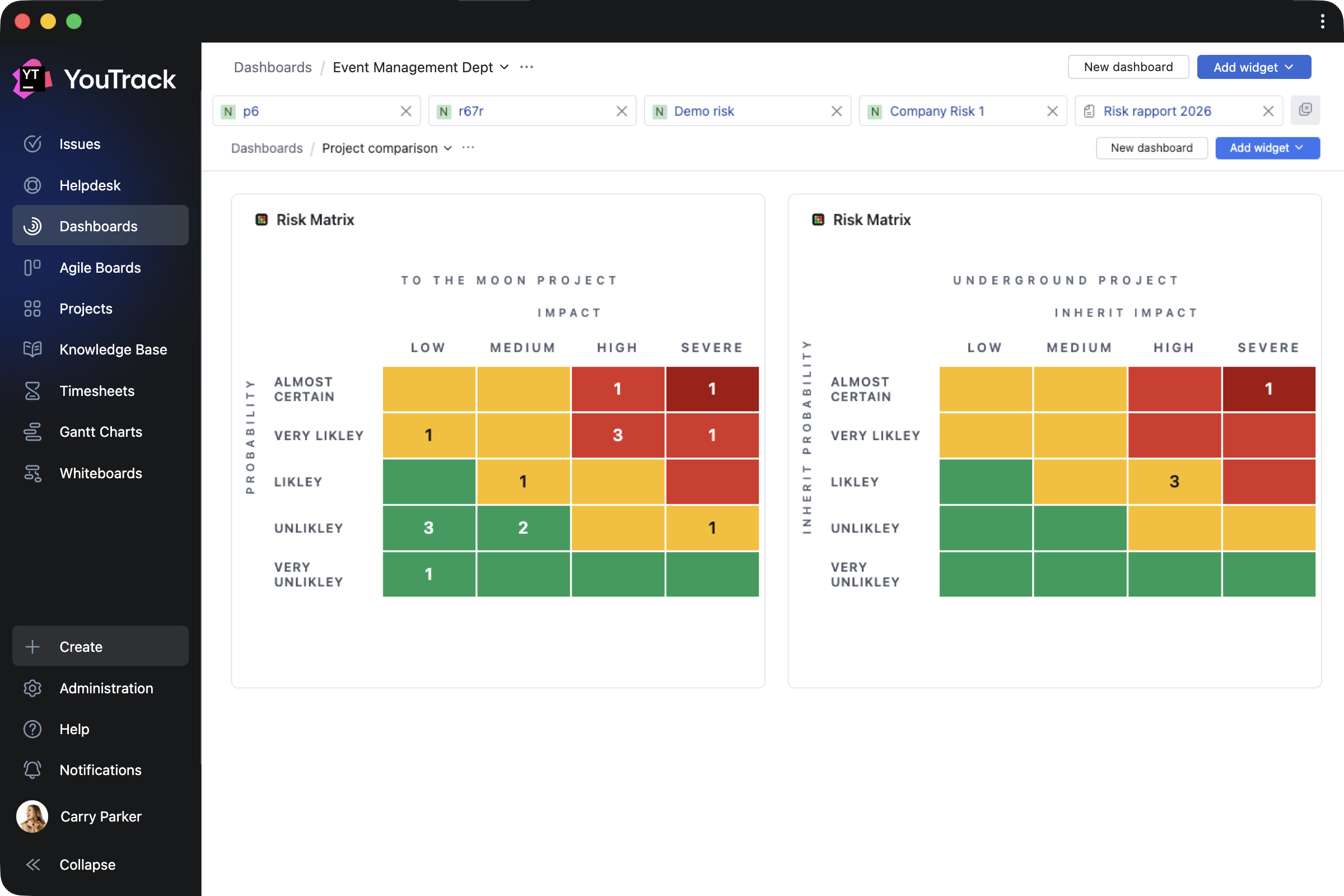 Risk Manager by Rixter AB helps project managers assess project risk levels by building risk-matrix widgets based on the probability and impact of specific outcomes for selected tasks.