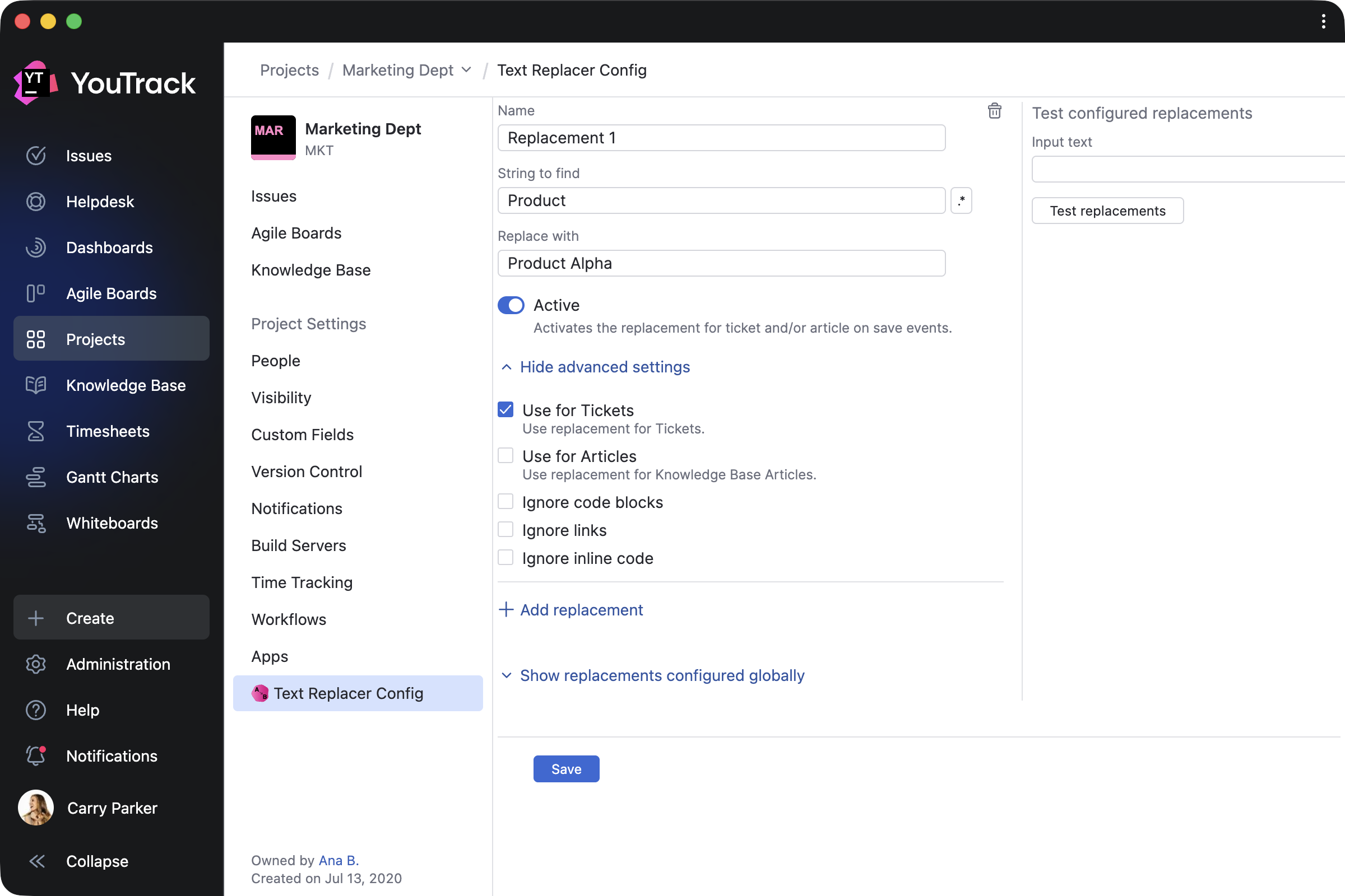 Text Replacer by Marcus Christensson allows you to update content across your project on either a one-time or a recurring basis. You can use it for tasks and articles to turn external system IDs into links, replace text with ready-made content, and more.