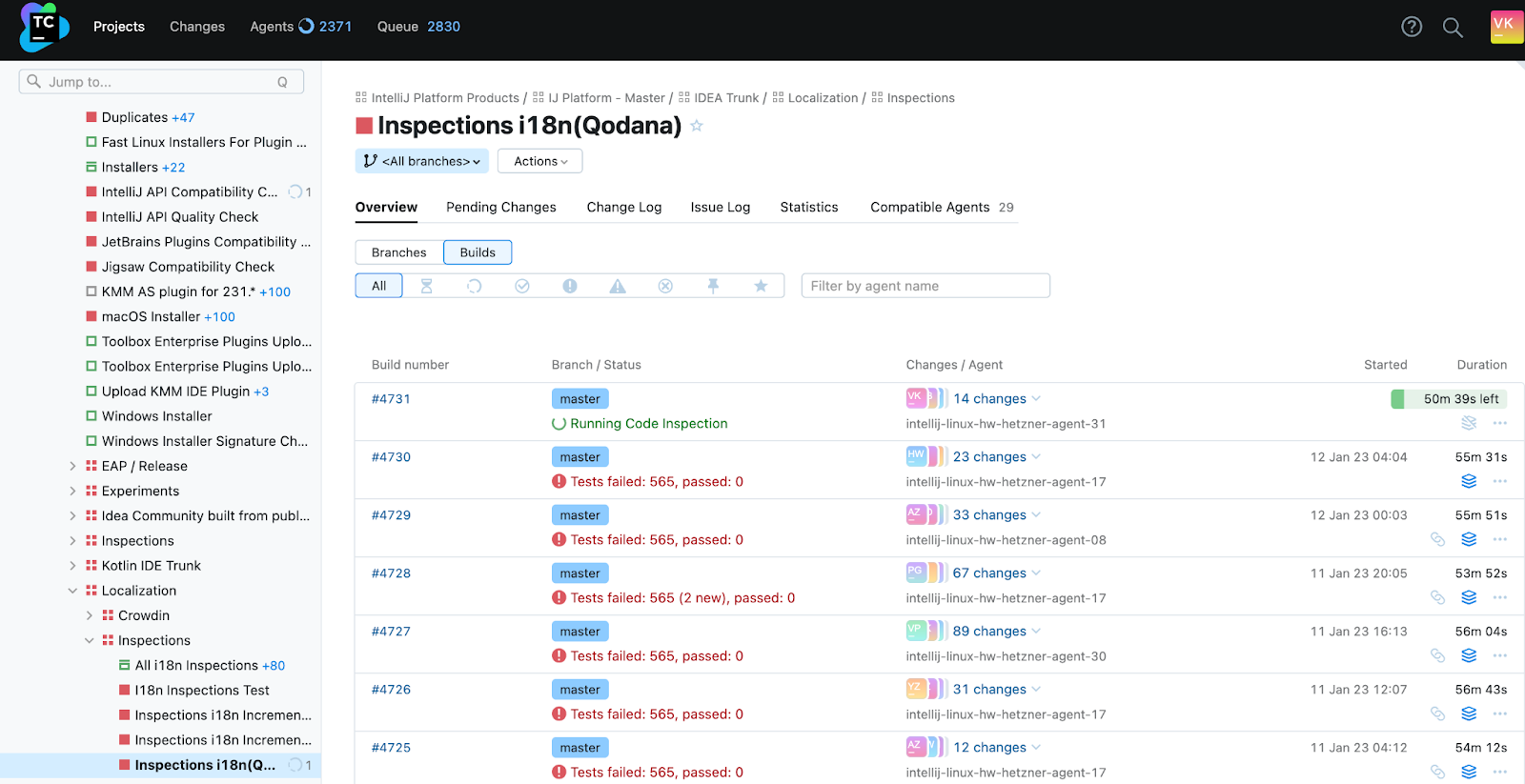 第一次运行 Qodana 在 TeamCity 中得到 10,000 个失败测试。